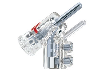Referenční banánkový WBT konektor vyrobený z čistého stříbra, s platinovým povrchem. Technologie Nextgen™.